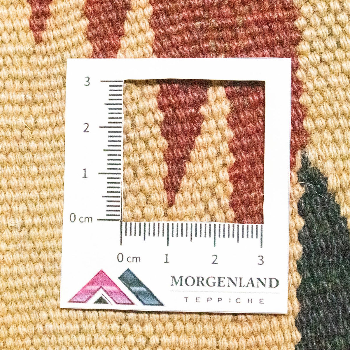 Questo tappeto è realizzato esclusivamente con lana di pecora filata a mano. La lavorazione manuale preserva le proprietà naturali della lana: è resistente, elastica e piacevolmente morbida al calpestio.