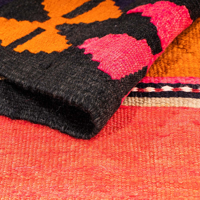 Este artístico Kelim - Old cautiva la vista con sus colores de moda, aportando una elegancia moderna y armoniosa a su ambiente. A diferencia de los clásicos alfombras orientales, los Kelim están tejidos a mano en lugar de anudados. En otros países, estos ejemplares también se utilizan como cojines o cortinas. Estos alfombras tienen un pelo fino, para el tejido superior se utiliza 100% lana virgen, que por naturaleza es extremadamente fácil de cuidar y resistente. Los expertos solo consideran auténticos Kelims aquellos fabricados en Turquía, la región del Cáucaso, Persia, Afganistán y Turkmenistán. Auténticos alfombras del Oriente, en efecto.