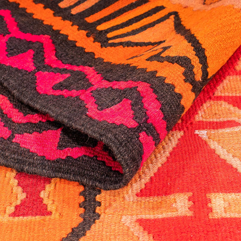 Este artístico Kelim - Old cautiva la vista con sus colores de moda, aportando una elegancia moderna y armoniosa a su ambiente. A diferencia de los clásicos alfombras orientales, los Kelim están tejidos a mano en lugar de anudados. En otros países, estos ejemplares también se utilizan como cojines o cortinas. Estos alfombras tienen un pelo fino, para el tejido superior se utiliza 100% lana virgen, que por naturaleza es extremadamente fácil de cuidar y resistente. Los expertos solo consideran auténticos Kelims aquellos fabricados en Turquía, la región del Cáucaso, Persia, Afganistán y Turkmenistán. Auténticos alfombras del Oriente, en efecto.