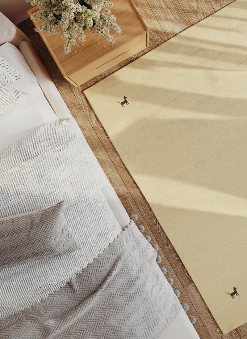 Questo tappeto è realizzato esclusivamente con lana di pecora filata a mano. Grazie alla lavorazione manuale accurata, le proprietà naturali della lana vengono preservate al meglio: robustezza, elasticità e una morbidezza piacevole ad ogni passo.