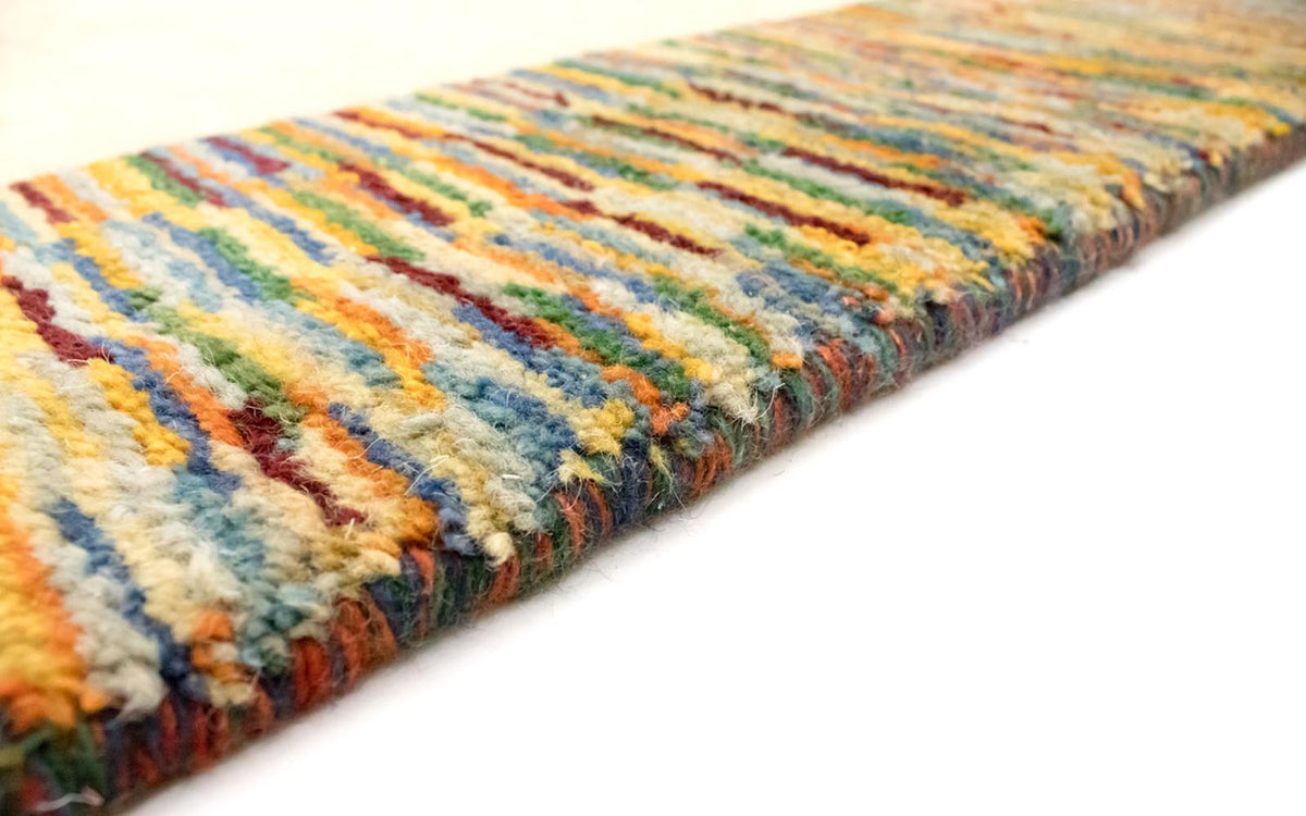 Questo tappeto è realizzato esclusivamente con lana di pecora filata a mano. La lavorazione manuale preserva le proprietà naturali della lana: è resistente, elastica e piacevolmente morbida al calpestio.