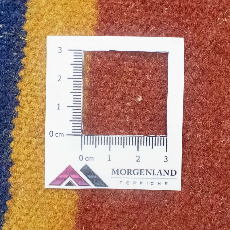 Questo tappeto è realizzato esclusivamente con lana di pecora filata a mano. La lavorazione manuale preserva le proprietà naturali della lana: è resistente, elastica e piacevolmente morbida al calpestio.