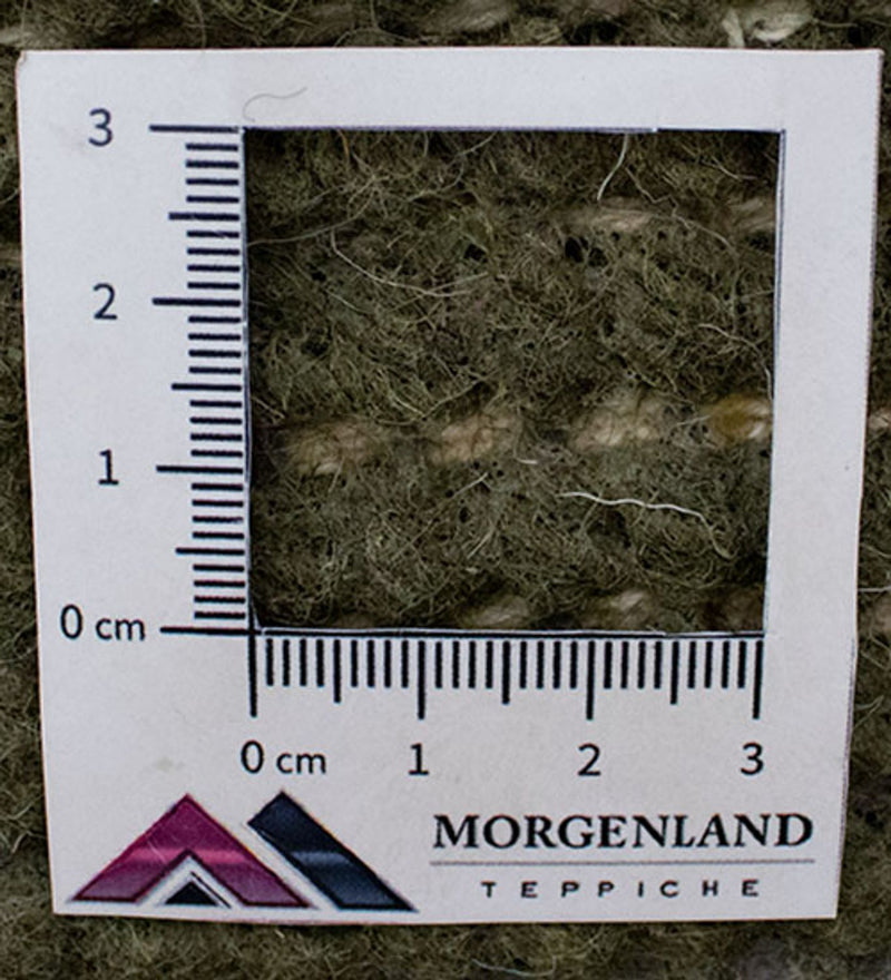 Questo tappeto è realizzato esclusivamente con lana di pecora filata a mano. La lavorazione manuale preserva le proprietà naturali della lana: è resistente, elastica e piacevolmente morbida al calpestio.