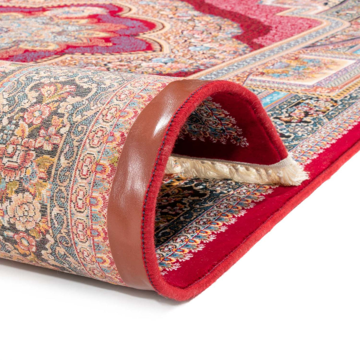 Il tappeto orientale "Abram" combina le vibranti tonalità del rosso e del blu nel suo design, conferendo a ogni ambiente un tocco di vivacità. Il tappeto è disponibile sia come runner che in forma rettangolare e si inserisce armoniosamente in un'ampia varietà di concetti di stanze, dal soggiorno allo studio. Realizzato con materiali resistenti, garantisce una lunga durata e un elevato livello di comfort. Le accattivanti combinazioni di colori e l'elegante motivo lo rendono la scelta ideale per chi vuole arredare la propria casa in modo elegante e pratico.