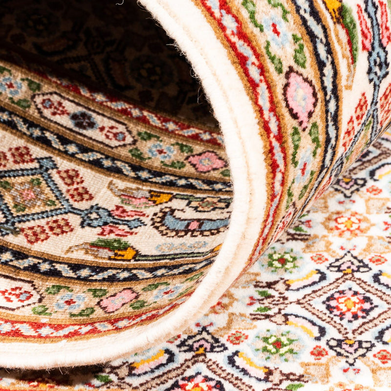 Il tappeto a mano di Moud, una delle più grandi città dell'Iran, è una vera opera d'arte. È stato realizzato con lana naturale pura e accuratamente collegato da artigiani esperti. Questi tappeti di alta qualità sono noti per le loro dimensioni straordinarie e la loro lana estremamente alta. Oltre alla loro bellezza, anche i tappeti di Moud sono estremamente facili da prendersi cura. Possono semplicemente essere puliti con un aspirapolvere o una scopa per rimuovere lo sporco e la polvere. Se necessario, il tappeto può anche essere pulito con un lieve agente di pulizia e acqua. Grazie alla loro natura di alta qualità e durevole, i tappeti Moud sono un investimento eccellente per ogni amante dei tappeti. Non sono solo una bella aggiunta ad ogni casa, ma anche una scelta facile e pratica. Indipendentemente dal fatto che tu scelga uno stile classico o moderno, un tappeto Moud darà alla tua casa un'eleganza e uno stile incomparabili.