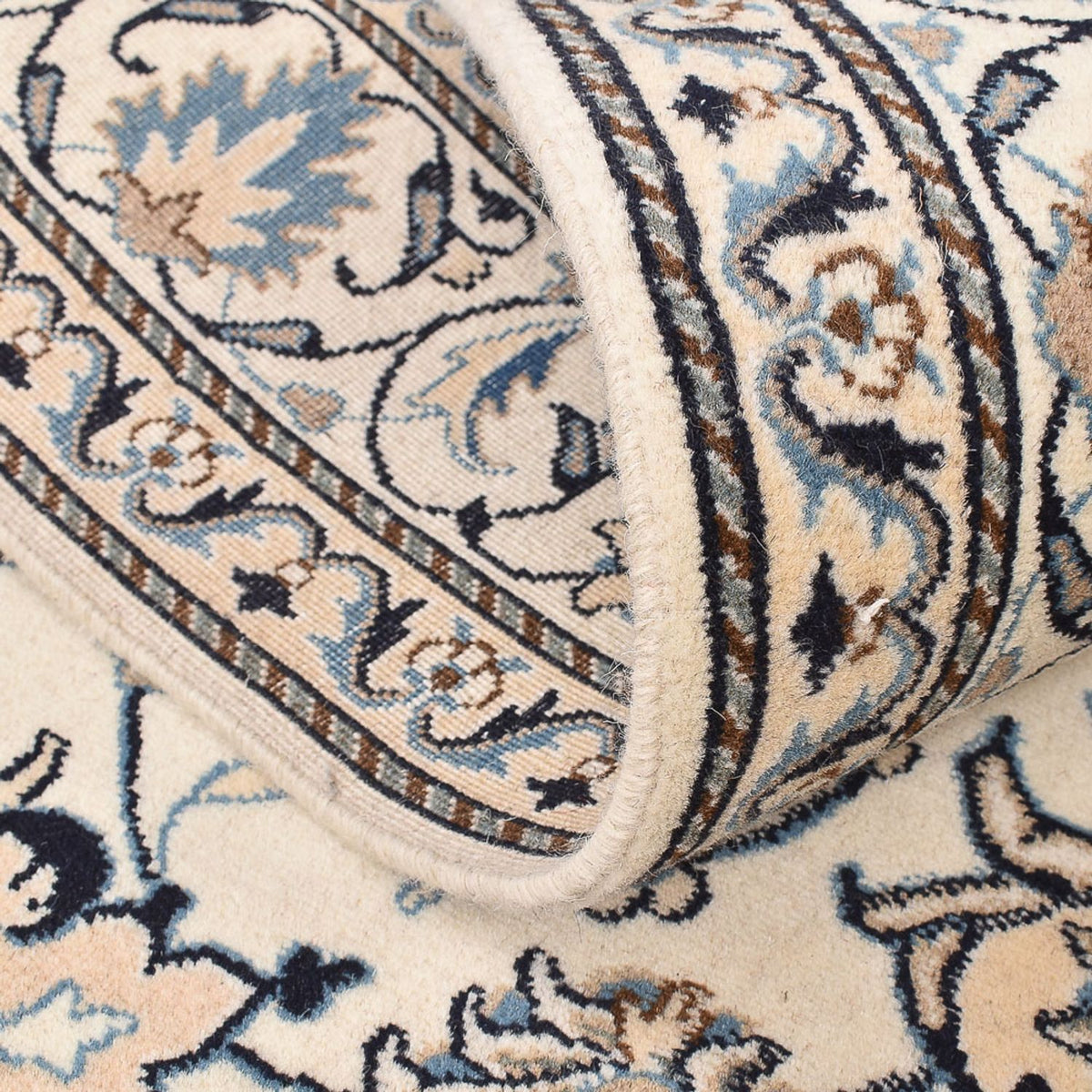 Las alfombras Nain se anudan con una finura excepcional. Como material de pelo se suele utilizar la mejor lana de kurk aterciopelada, y siempre se emplea la seda para poder realizar un dibujo exacto de medallones y diseños en toda la superficie. Nain se divide en 4 niveles de calidad, que se indican en "La". 4La, 6La, 9La, 12La. Es una denominación de calidad y se refiere al número de capas de hilo que contiene cada urdimbre. Cuanto menor sea el número indicado, mayor será la densidad de nudos, más fina y densa será la alfombra. Los Nains están entre los más bellos del mundo. También son muy populares entre los coleccionistas. Debido a su sencilla elegancia, los Nains también encajan en los interiores modernos y aportan lujo al hogar.