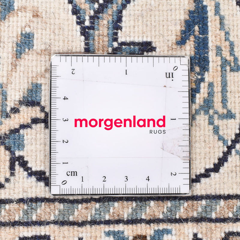 Las alfombras Nain se anudan con una finura excepcional. Como material de pelo se suele utilizar la mejor lana de kurk aterciopelada, y siempre se emplea la seda para poder realizar un dibujo exacto de medallones y diseños en toda la superficie. Nain se divide en 4 niveles de calidad, que se indican en "La". 4La, 6La, 9La, 12La. Es una denominación de calidad y se refiere al número de capas de hilo que contiene cada urdimbre. Cuanto menor sea el número indicado, mayor será la densidad de nudos, más fina y densa será la alfombra. Los Nains están entre los más bellos del mundo. También son muy populares entre los coleccionistas. Debido a su sencilla elegancia, los Nains también encajan en los interiores modernos y aportan lujo al hogar.