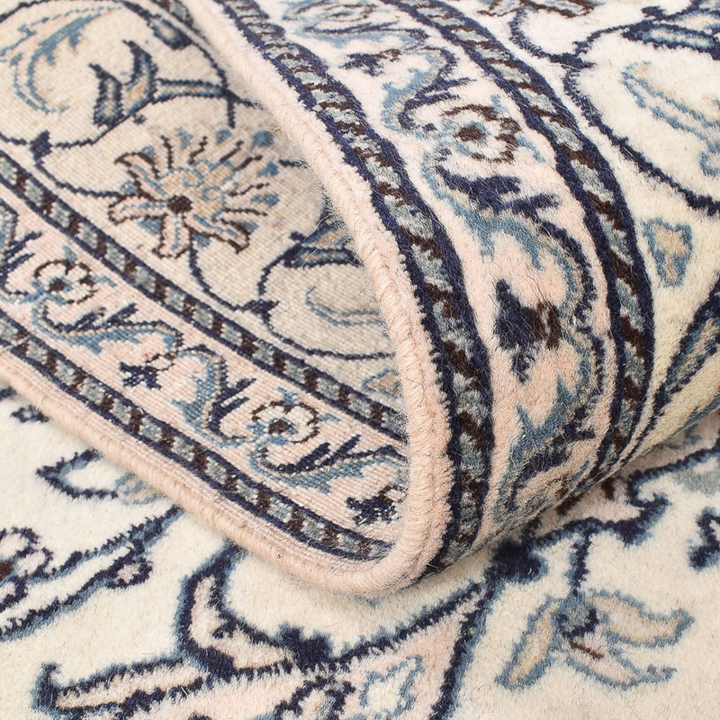 Las alfombras Nain se anudan con una finura excepcional. Como material de pelo se suele utilizar la mejor lana de kurk aterciopelada, y siempre se emplea la seda para poder realizar un dibujo exacto de medallones y diseños en toda la superficie. Nain se divide en 4 niveles de calidad, que se indican en "La". 4La, 6La, 9La, 12La. Es una denominación de calidad y se refiere al número de capas de hilo que contiene cada urdimbre. Cuanto menor sea el número indicado, mayor será la densidad de nudos, más fina y densa será la alfombra. Los Nains están entre los más bellos del mundo. También son muy populares entre los coleccionistas. Debido a su sencilla elegancia, los Nains también encajan en los interiores modernos y aportan lujo al hogar.