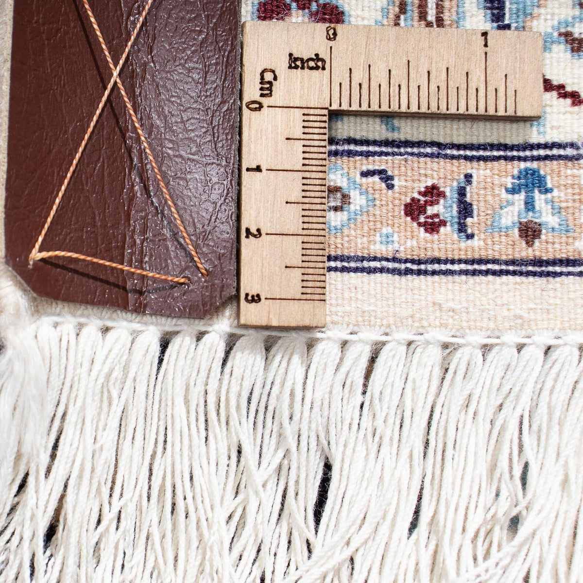 Esta hermosa y rara alfombra persa finamente tejida nain 6la pertenece al nivel de calidad 4, el más alto con aproximadamente 890.000 a 1.000.000 de nudos por metro cuadrado. El fino Nain 6La está considerada en todo Oriente como una alfombra con características especiales y de gran calidad. Cada una de estas alfombras es anudada con una finura extraordinaria. Como material de pelo se suele utilizar la mejor lana de corcho aterciopelada, además, siempre se emplea la seda para poder realizar un patrón con hermosos y elegantes motivos decorativos.
