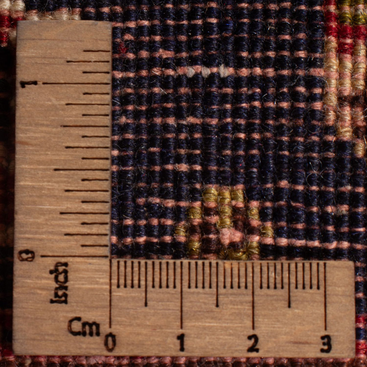 Esta colorida alfombra Abadeh está anudada a mano con gran esfuerzo. Una alfombra extremadamente atractiva y resistente que se anuda en la ciudad de Abadeh, en el suroeste de Persia. La pequeña ciudad de Abadeh está situada entre Ispahán y Shiraz. El dibujo está influenciado por los nómadas y suele consistir en un hexágono en el centro con una roseta o medallón.