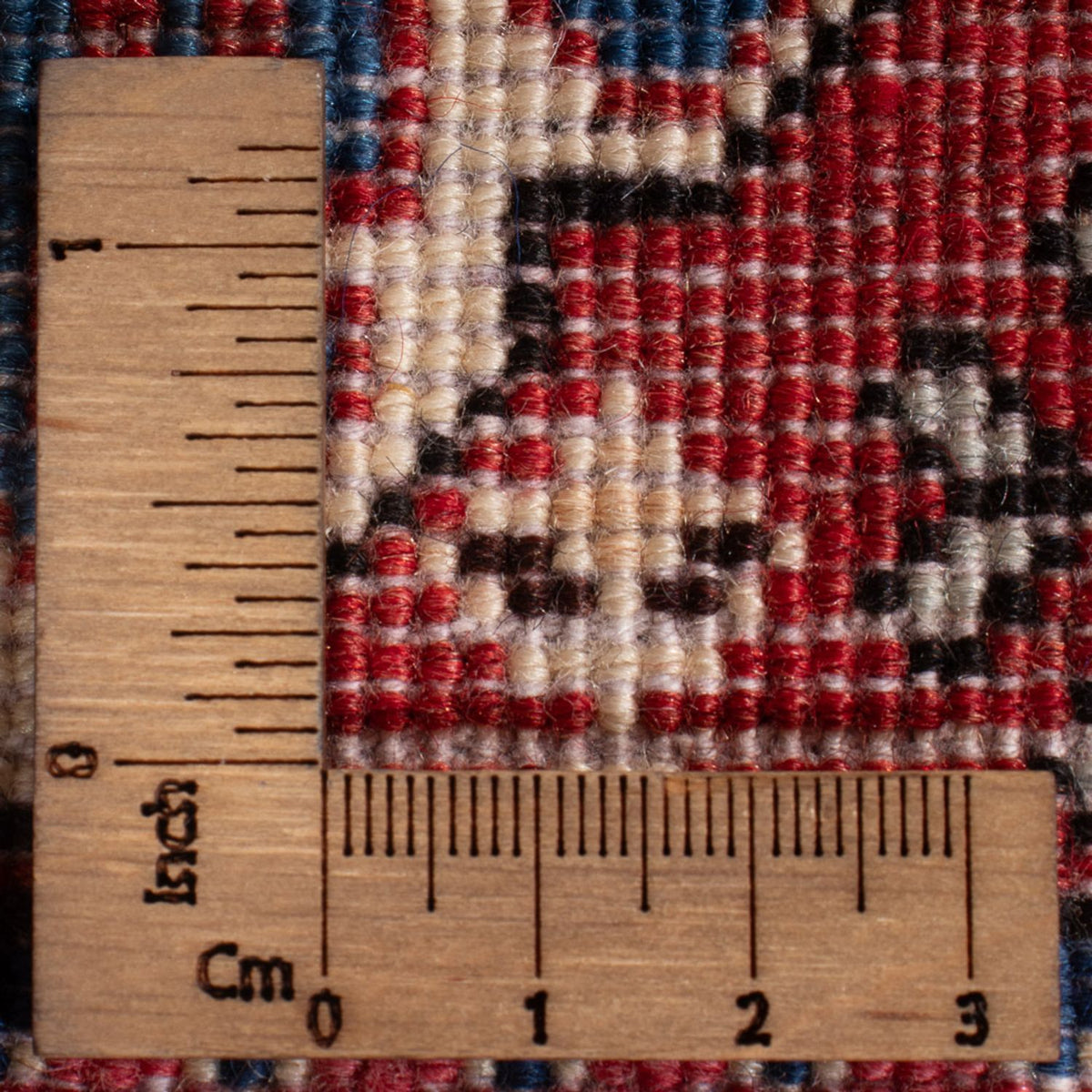 Esta colorida alfombra Abadeh está anudada a mano con gran esfuerzo. Una alfombra extremadamente atractiva y resistente que se anuda en la ciudad de Abadeh, en el suroeste de Persia. La pequeña ciudad de Abadeh está situada entre Ispahán y Shiraz. El dibujo está influenciado por los nómadas y suele consistir en un hexágono en el centro con una roseta o medallón.