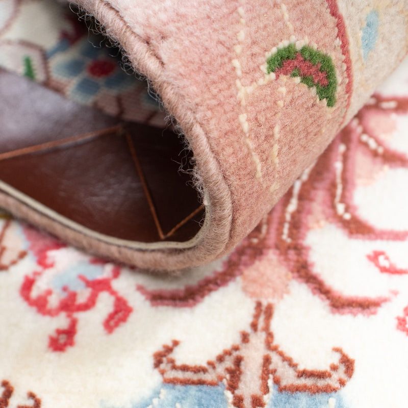 Esta alfombra persa finamente anudada - Tabriz - Royal está elaborada con lana de corcho de alta calidad, en un cuidadoso e impecable trabajo manual. El Tabriz 40 Raj es uno de los más bellos de su clase. Esta alfombra estableció la buena reputación del arte persa del anudado. Es una alfombra muy popular procedente de una de las mejores zonas de anudado de Persia. Suelen tener un gran medallón central con bellos motivos florales, un motivo típico oriental. Las alfombras de Tabriz suelen llevar la denominación adicional de Raj. Se distingue entre 40, 50, 60, 70, 80 Raj. Cuanto mayor sea el número, más fino y denso será el nudo de la alfombra. Raj es una designación de calidad y se refiere al número de nudos en un ancho de aproximadamente 70 mm. Gracias a su denso anudado, la alfombra es duradera, resistente y también muy adecuada para un uso extremo. La elegancia clásica y la riqueza del color caracterizan a esta noble alfombra.